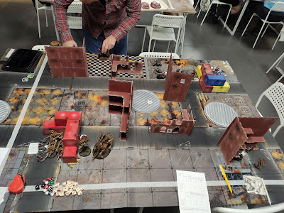 Для игры по диагонялям стол довольно прилично закрытый, да еще и куча кратеров - прямо со всех сторон интересный террейн, влияющий на игру. Ну хоть будет куда зашкерится от мельт)