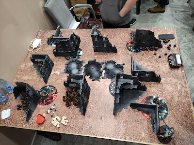 По очкам на конец третьего хода 41 - 20 в пользу Тиранид.